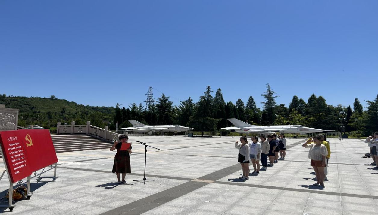 全体人员在庄严肃穆的扶眉战役烈士纪念碑下,向扶眉战役烈士默哀,共同缅怀长眠于此的革命烈士;在鲜红的党旗前,在党支部书记的带领下,大家举起握拳的右手,重温入党誓词,庄严宣誓。