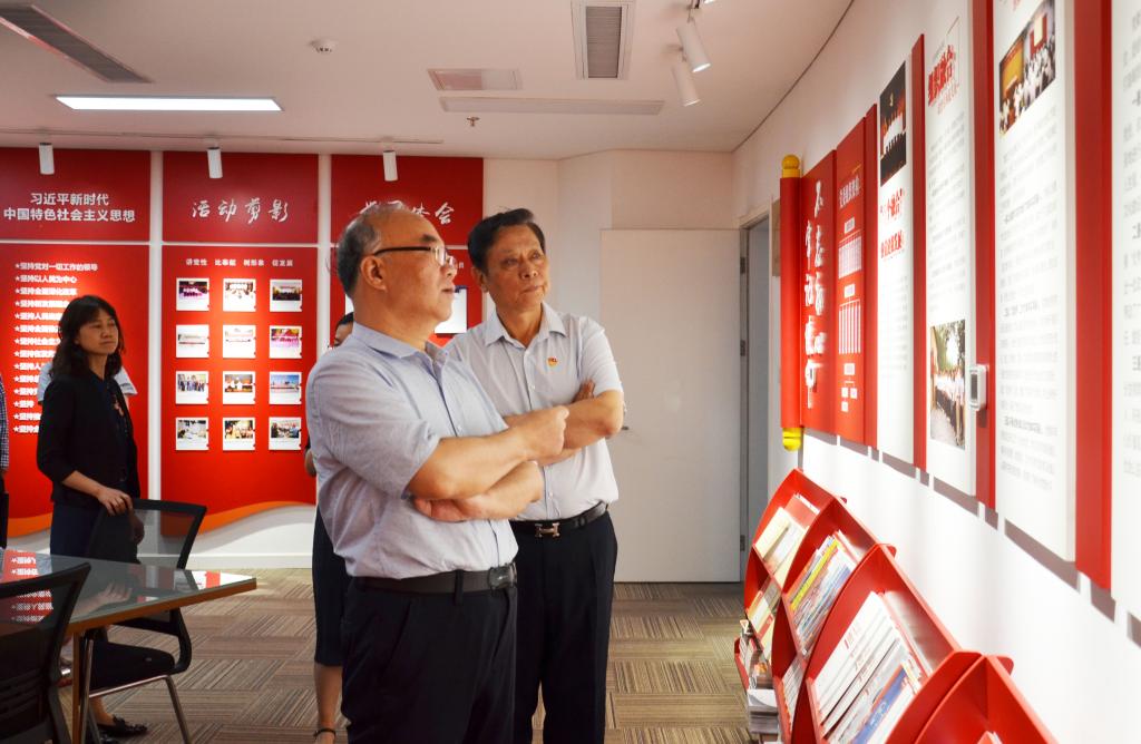 调研组在希格玛会计师事务所党委书记吕桦同志的陪同下,参观了事务所的办公场所,对希格玛所文化长廊、党员活动室、党员培训室等阵地建设情况进行了实地查看,李宇孝书记详细询问了希格玛所党建工作开展情况和事务所在发展中遇到的问题和困难。