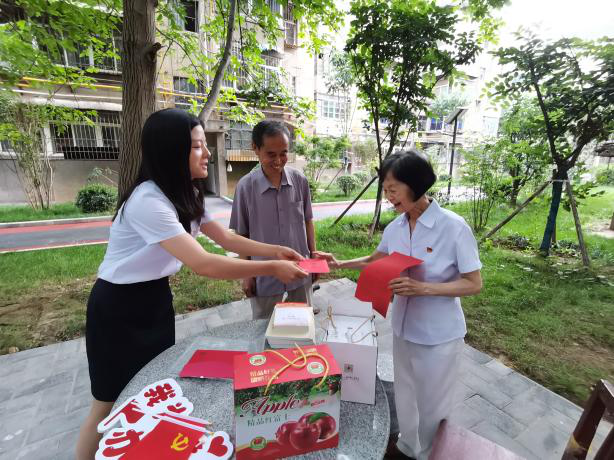 党支部为他们送去了党徽、慰问信、慰问金和慰问品、《中国共产党简史》等党史书籍。期间,支委成员与老人手拉手亲切交谈,详细询问老俩口的身体状况和生活情况。