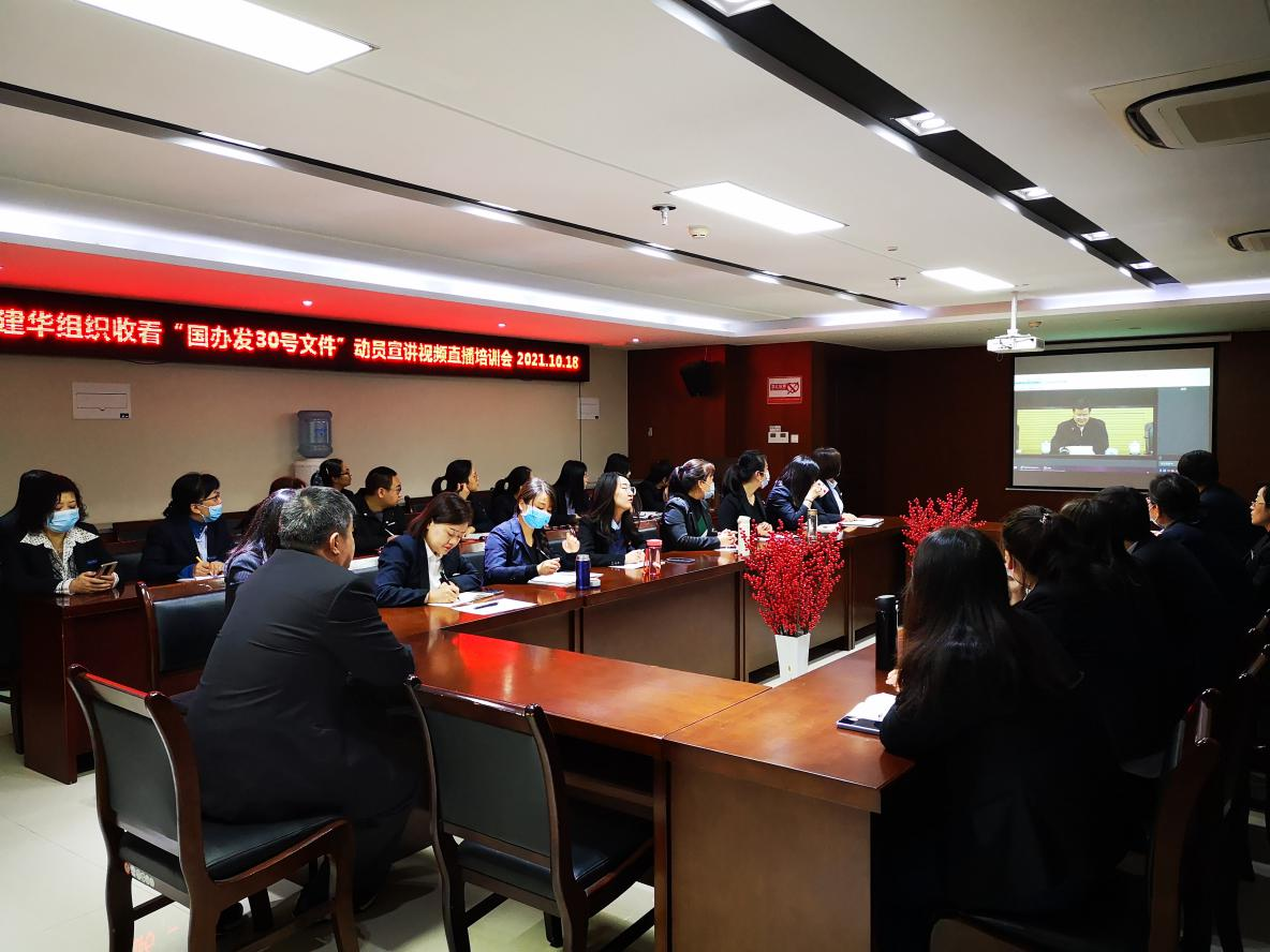 2021年10月18日,陕西建华会计师事务所按照陕西省注册会计师协会《关于举办陕西省注册会计师行业学习宣传“国办发30号文件”动员宣讲暨“一竿子到底”培训班的通知》要求,全所员工全程参加了本次直播培训。