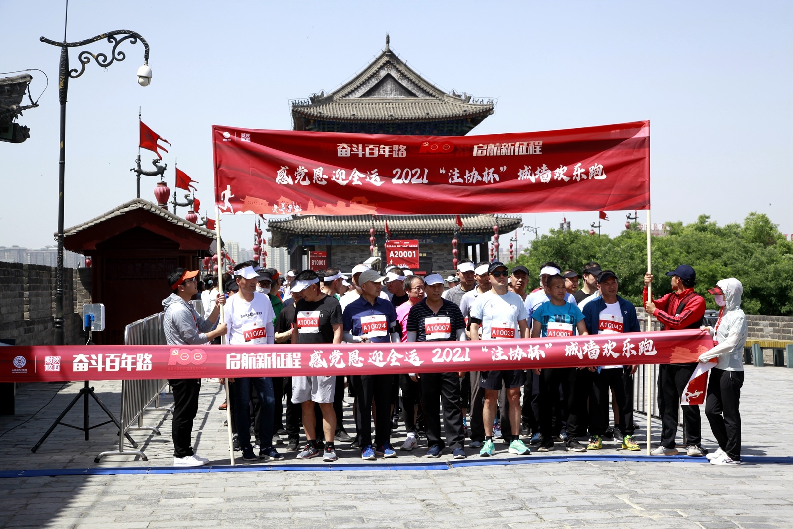 为庆祝中国共产党成立100周年,喜迎中华人民共和国第十四届运动会召开,5月8日下午,陕西省财政厅联合省注册会计师协会,以“感党恩·迎全运”为主题,共同举办了2021“注协杯”城墙欢乐跑活动。省财政厅党组成员、副厅长王范儒、常艳玲、李明怀出席开幕式。