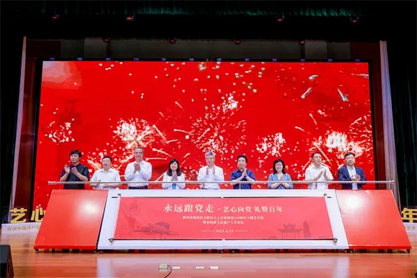 6月21日,“永远跟党走——艺心向党 礼赞百年”陕西省新的社会阶层人士庆祝建党100周年主题艺术展暨非物质文化遗产人才论坛在西安举办。陕西省委常委、省委统战部部长徐新荣宣布活动启动,省政协副主席刘宽忍出席启动仪式。