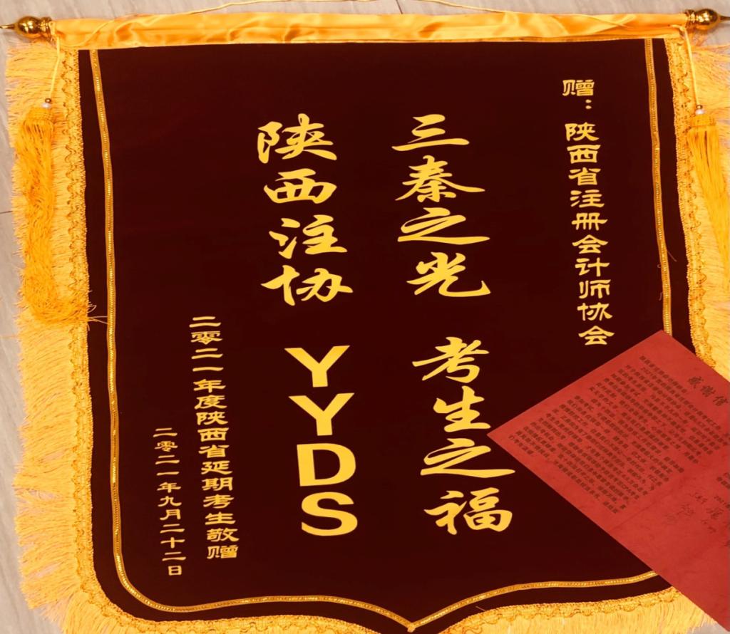 9月23日下午,省注册会计师事务服务中心接待了10名特殊的办事人员。这10人是今年参加我省注册会计师考试的考生,他们受500多名考生的委托,将印有“三秦之光、考生之福、陕西注协、YYDS”的锦旗和一封感谢信送到厅注册会计师考试委员会办公室,表达对组织考试顺利完成的感激之情。
