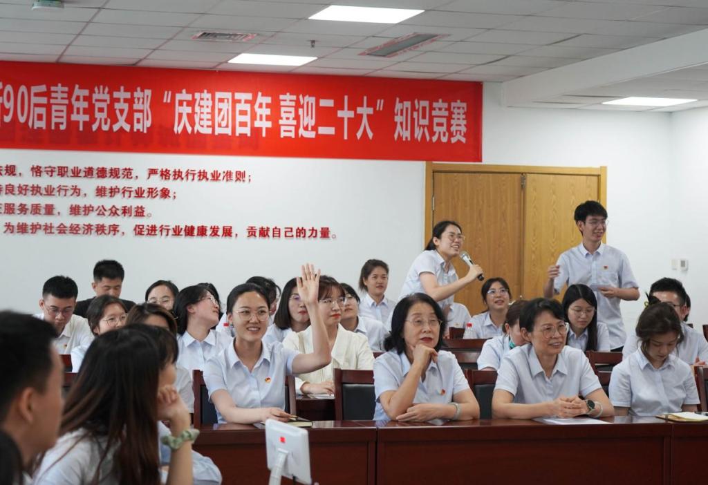 6月上旬,90后青年党支部、团支部通过网络平台在全所范围内发起“庆建团百年 喜迎二十大”线上知识竞赛,内容涵盖党史、团史、节能环保、企业文化等内容,旨在引导全所青年员工从我们党的非凡征程中寻找初心、砥砺使命,从建团百年的光辉历史中吸收营养、汲取力量,在谱写新时代绚丽篇章中百尺竿头、更进一步。经各部门、分所的精心选拔,最终审计三部、审计五部、审计七部等6支代表队脱颖而出,站上了决赛的舞台。
